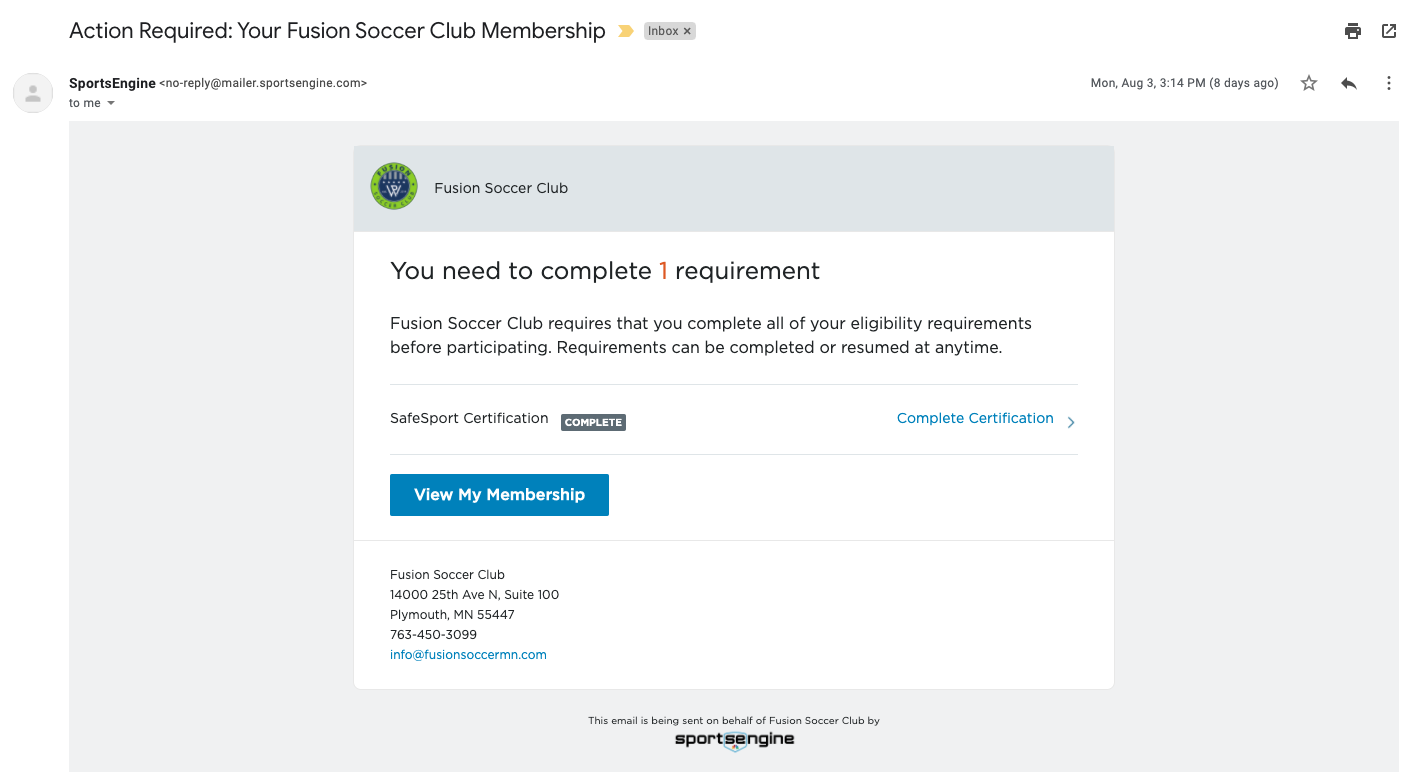 - Even if the reminder emails aren’t accessible, links to complete outstanding requirements are available via one’s MySE dashboard, once the invitation to join the applicable US Club Soccer member organization is accepted. Here are instructions: https://help.sportsengine.com/en/articles/1254.